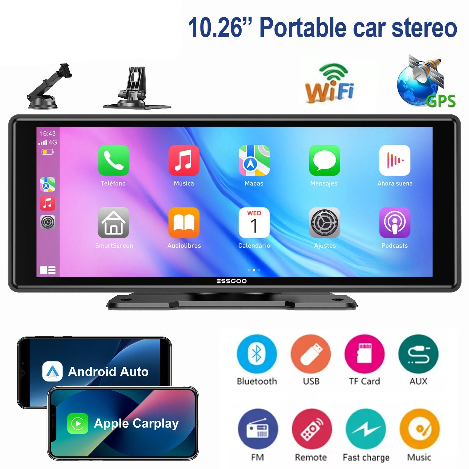 Experience advanced in-car entertainment and navigation with this 10.26" portable universal car stereo. Featuring a high-definition touchscreen, it offers clear visuals for radio, GPS navigation, and WiFi connectivity. Designed for easy installation and compatibility with various vehicles, it enhances your driving experience by providing seamless access to music, maps, and online features on the go.